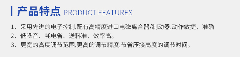 1.采用先進的電子控制,配有高精度進口電磁離合器/制動器,動作敏捷、準確。