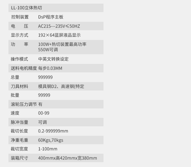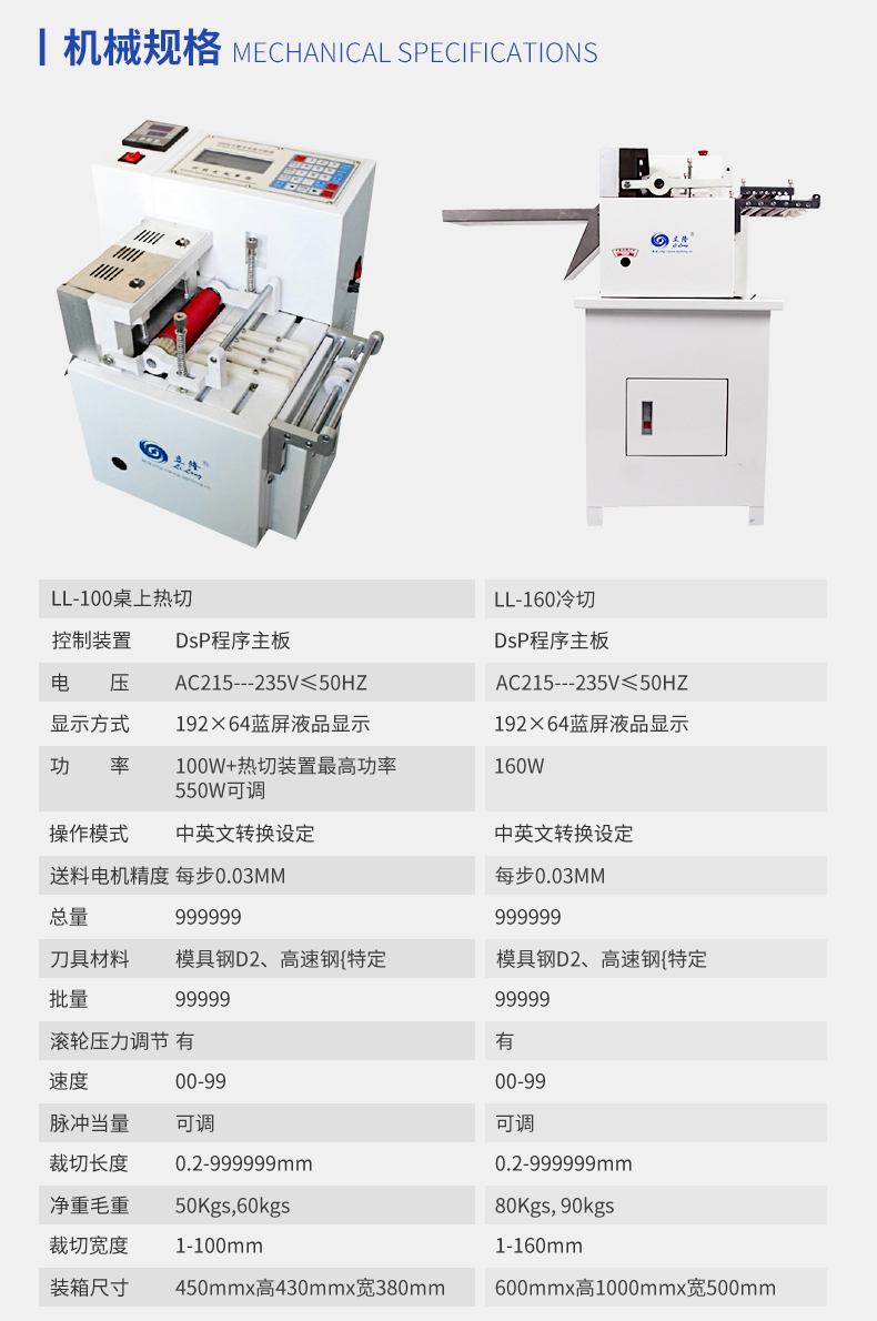 LL-100桌上全數(shù)字智能切斷機(jī)(熱切型)/(冷切型) 產(chǎn)品說明: 本機(jī)采用全數(shù)字智能控制裝置,按鍵操作,同時(shí)可任意設(shè)定切斷長(zhǎng)度/數(shù)量、送料速度、且裁切精度準(zhǔn)確、耗損少、機(jī)型設(shè)計(jì)符合人體工學(xué)原理操作簡(jiǎn)單,廣泛適用于織帶、拉鏈、...
